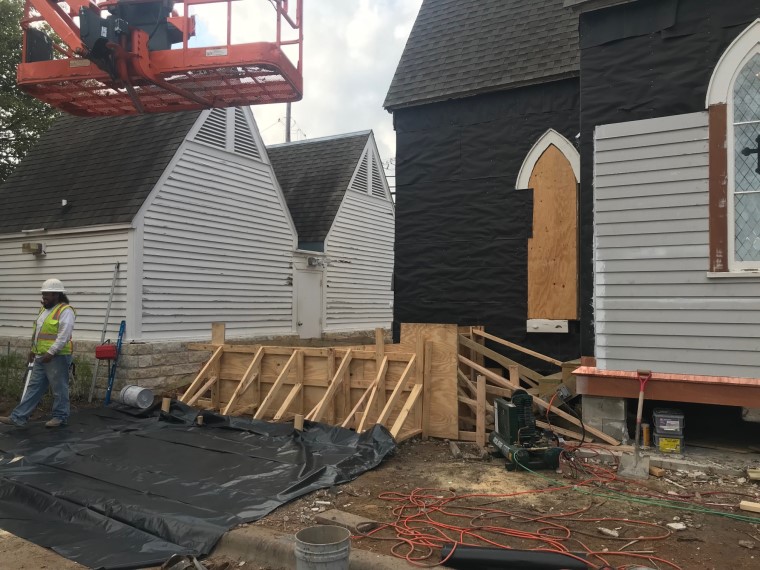 Complete exterior historic renovation of Grace Heritage church in downtown Georgetown. All new siding, trim, rebuilt windows and doors, rock work, and new ADA ramps.