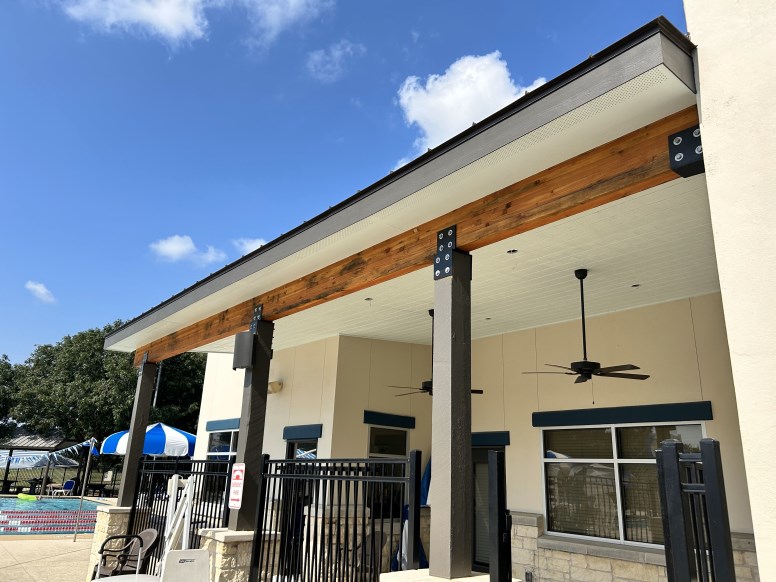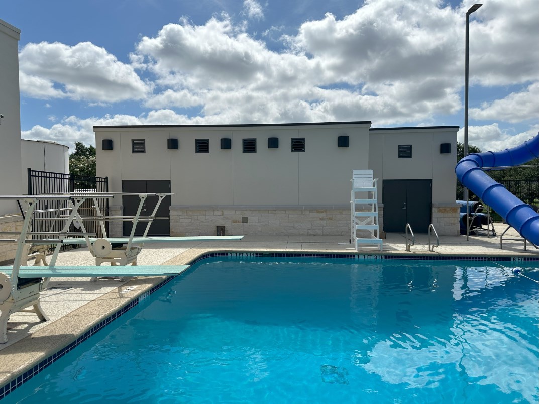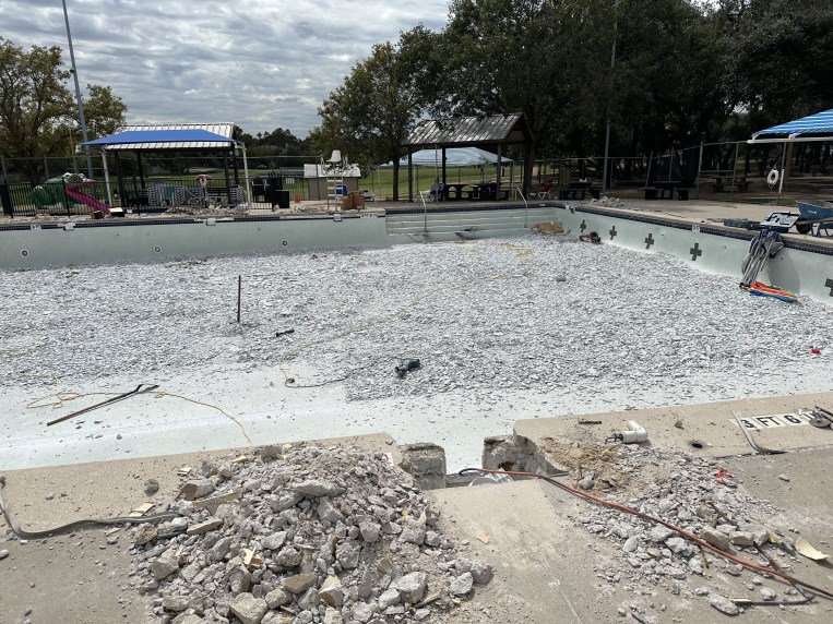 Demo of existing pump bldg. , fencing, and pool decking/coping/plaster. Construction of new pump and storage bldg, all new pool equipment, pool tile/plaster, decking, sundeck, fences and gates, new light poles, sconces, fun-brellas, and covered awnings, and other misc.