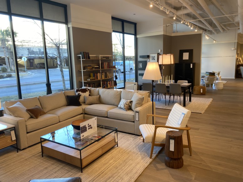 Change existing sporting goods store into Furniture showroom. Includes demo, new floors, display walls, ductwork, paint all walls and ceilings, millwork, storefront, bath and break room renovations, fire alarm and fire sprinkler, all new power and lighting layouts, POS systems.